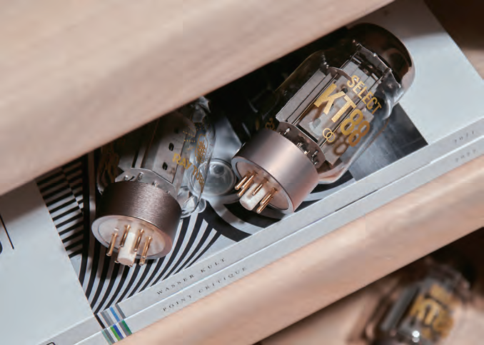 예전에도 그랬지만, 여전히 인기 출력관이라면, KT88을 첫 손에 꼽을 수 있다. 힘과 해상력은 물론이고, 진공관 특유의 따뜻한 질감까지 느낄 수 있어, 관 특유의 매력이 잘 드러나는 제품이다. 물론 그 반대편의 좀더 순도 높고 투명한 사운드의 300B나 2A3을 좋아하는 사람들도 많지만, KT88만의 단단한 저역과 여유로운 다이내믹, 보컬의 밀도감, 그리고 현대 음원에서도 선명함을 잃지 않는 고역까지, 밸런스 좋게 즐기고 싶다면, 정말 올라운드 성향의 범용성 좋은 출력관으로 베스트이다. 게다가 제조사에 따라 소리 성향이나 음색도 체감하기 딱 좋은 튜브인데, 역시 요즘 또 하나의 트렌드인 튜브 롤링의 재미가 쏠쏠한 관이라는 것. 물론 상태 좋은 NOS 관이 주는 오리지널의 만족감이 당연히 더 클 수는 있겠지만, 의외로 잘못 구매했다가는 상태나 품질에 크게 실망하는 경우가 한두 번이 아니다. 결국 안정적인 생산 라인을 갖춘 신관 제조사를 선택하는 것이 베스트라는 것인데, 이런 분위기에 힙 입어 요즘 진공관 전문 제조사인 레이 튜브(Ray Tubes)가 한국 정식 출시와 더불어 크게 관심을 받고 있다. 이들의 셀렉트 KT88이라면, 아마 가장 성능 좋고, 만족도 높게 기존 KT88 관을 교체할 수 있을 것이다.